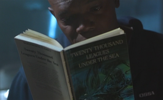 This book comes from the scene in which Dustin Hoffman confronts Samuel L. Jackson in the Habitat, and finds that the pages of the book he has been reading are blank after the attack from the giant squid.