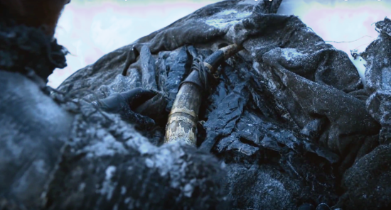 This Dragon-glass dagger was used during the production of the HBO series ‘Game of Thrones’ and was most prominently seen when Samwell Tarley, Edd & Grenn of the Nightswatch discover the bundle of ancient weapons buried in the snow at the Fist of the First Men north of The Wall. It’s then used by Sam when he manages to kill a White Walker single handed and again later when he gives it to Jon Snow for his voyage North of the Wall to recruit the Wildlings.
