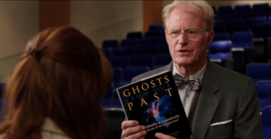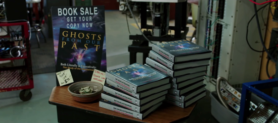 The book is titled “Ghosts From Our Past” by Abigail L. Yates (Melissa McCarthy) and Erin Gilbert (Kristen Wiig). This was used as set dressing in the book signing scene.