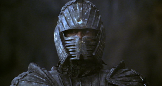This helmet was worn by one of the Necromonger Captains during the filming of The Chronicles of Riddick. The Necromonger Captain version of the helmet has an addition set of spines along the top and has a build in ‘cage’ over the face – unlike the open-faced helmets and masks worn by lower ranked Necromongers.