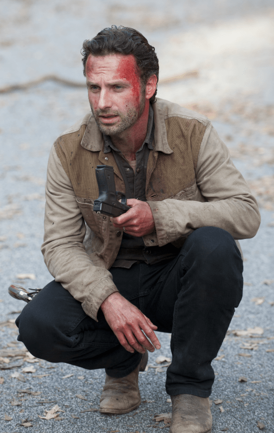 This outfit was worn by Andrew Lincoln as Rick Grimes in AMC’s The Walking Dead.