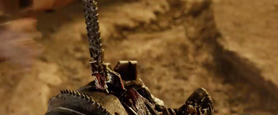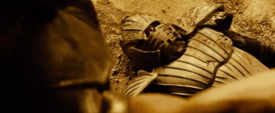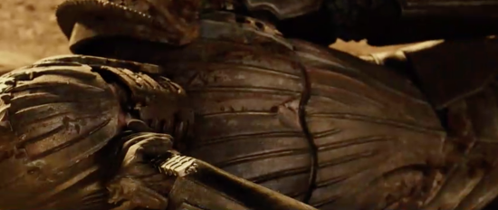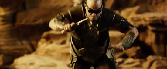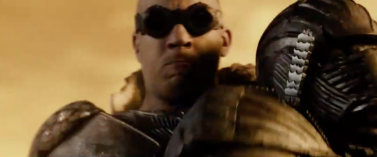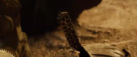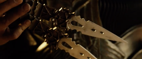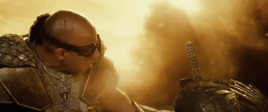 It has a decorative design styled after the Necromonger armour and is made of a lightweight material to protect the actors during filming and was used by Riddick on the surface of the planet when he is marooned by the Necromongers to send a few of them to the Underverse!