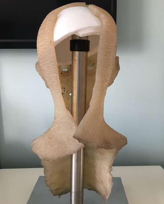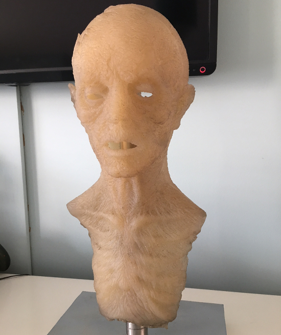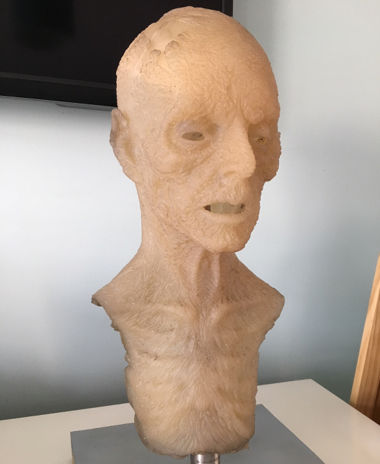 This is an original make up prosthetic used during the filming of the second season of AMC’s The Walking Dead. It has been professionally cleaned to preserve the life of the piece, but still has some make-up residue on the inside.