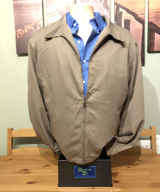 Walter White (Bryan Cranston) Costume This is an original costume worn by Bryan Cranston as Walter White in Breaking Bad. This costume most prominently features in the season 5 episode Ozymandias and consists on a Jacket, trousers, blue button up shirt and a white undershirt. Share this: Click to share on X (Opens in new window) X Click to share on Facebook (Opens in new window) Facebook Like Loading...